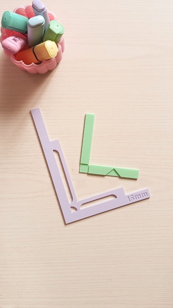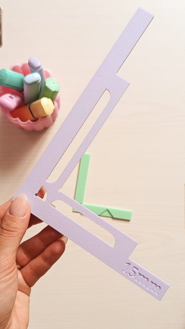 Es la solución ideal para tus creaciones. Permite un posicionamiento preciso del cartón en el papel, garantizando un margen perfecto de 15mm. Además sumamos una regla para cortar las esquinas de forma perfectas.