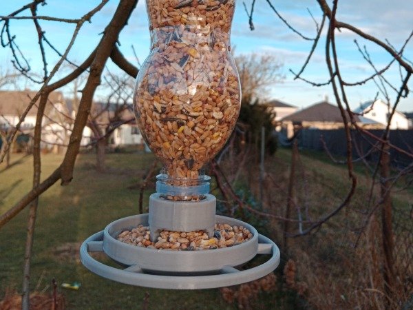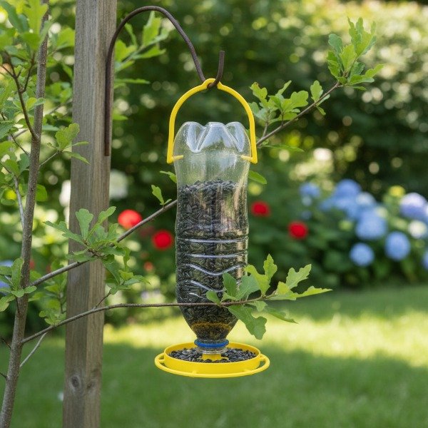 Este innovador producto utiliza una botella como soporte, lo que permite una fácil recarga de alimento y una limpieza sencilla. Su diseño práctico y funcional se adapta a diferentes espacios, permitiendo que tus aves se alimenten de manera cómoda y segura.
