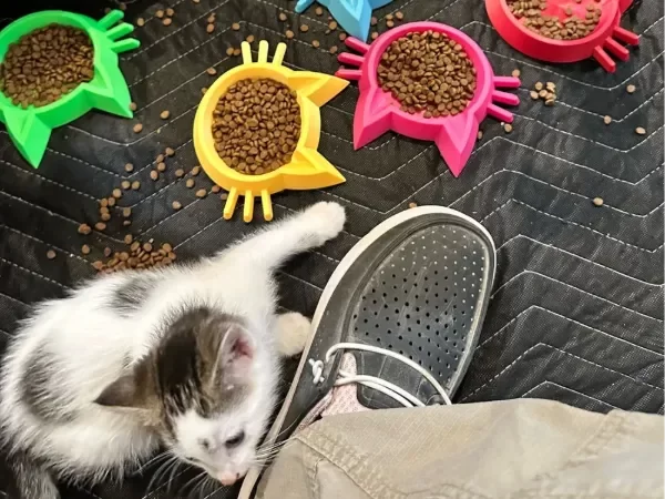 Fabricado en material PLA, este comedero es ligero y fácil de limpiar, lo que facilita su uso diario. Su diseño en forma de gato no solo es estético, sino que también añade un toque divertido a la hora de la alimentación, convirtiendo cada comida en una experiencia agradable.